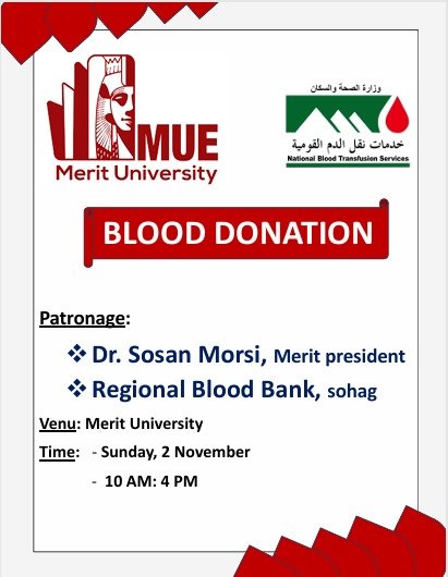 “In line with the university’s role in serving the community, Merit University, in collaboration with the Regional Blood Bank in Sohag Governorate and with the participation of the “wmana7yahaa” medical charity team