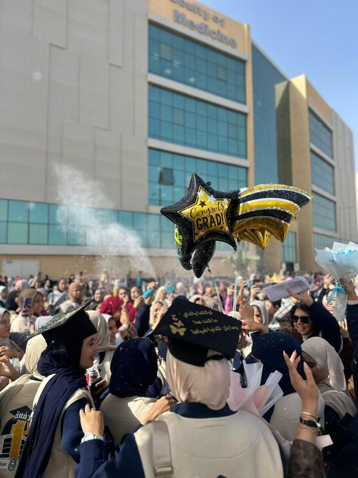 In an atmosphere filled with joy and camaraderie, medical students at Merit University organized a friendly celebration to mark the completion of their academic studies and the beginning of their internship, the most important practical phase of their medical careers. The celebration was initiated by the students themselves, who were eager to share moments of joy, reminisce, and document their long academic journey.